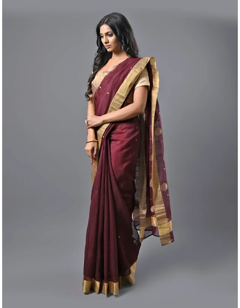 A cotton blend saree is a favorite for daytime and office celebrations. It offers breathability, structure, and a polished look without feeling heavy or stiff.